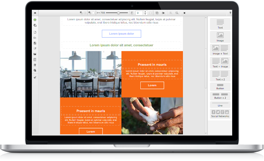 - Créez votre email depuis un modèle existant, ou depuis la boîte à outils et ses composants de base